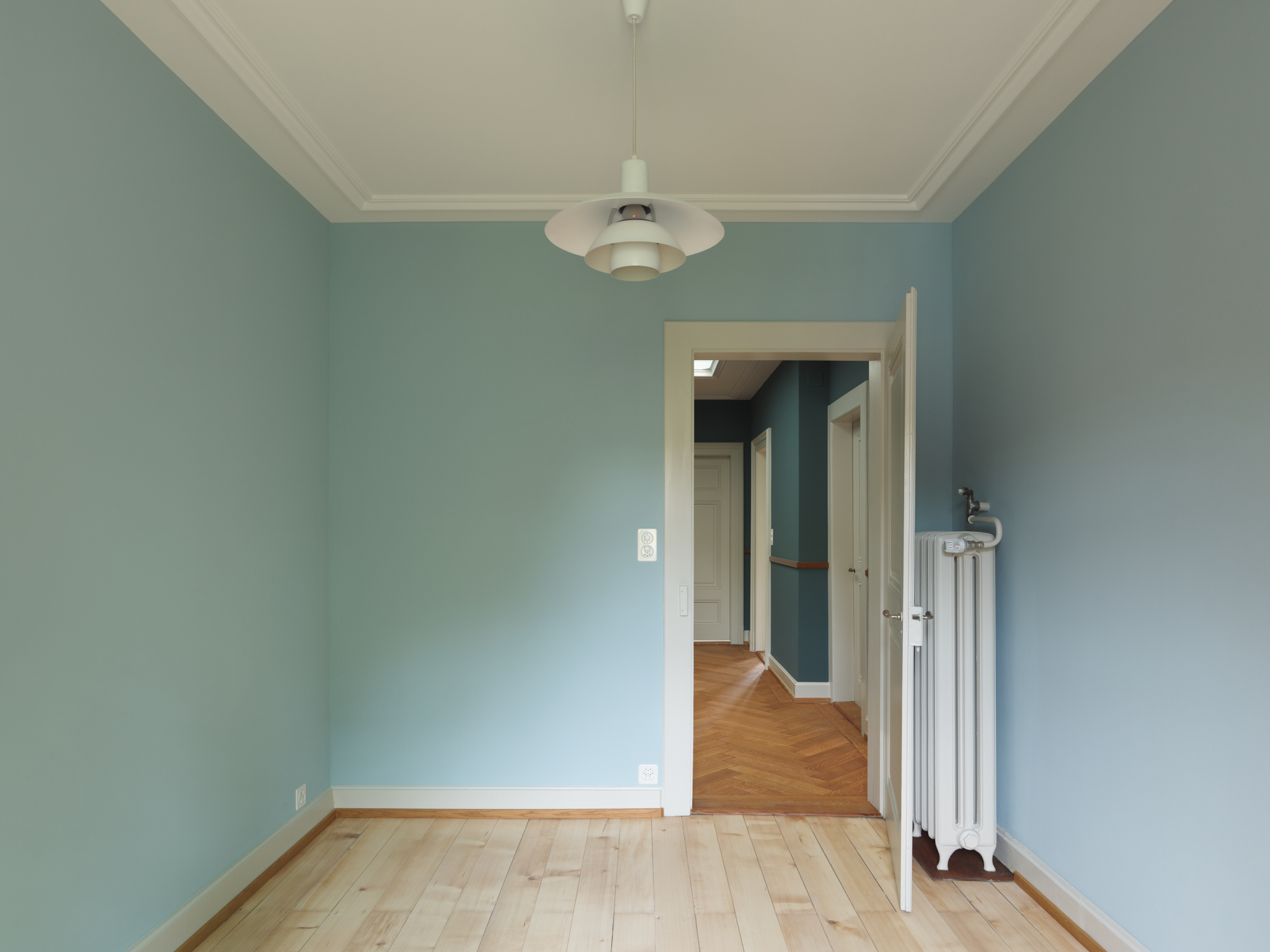 Das Einfamilienhaus von Anfang des 20. Jahrhunderts präsentierte sich in originalem, aber sanierungsbedürftigem Zustand. Sämtliche Räume sind selbst für die heutige Zeit grosszügig und bedurften nur minimaler Anpassungen, um sie an aktuelle Bedürfnisse anzupassen. So wurde zum Beispiel das Etagen-WC am Treppenabsatz im 1. Obergeschoss ins Bad integriert und der neu gewonnene Platz zu einer Leseecke gestaltet. Das grosszügige Schlafzimmer konnte durch einen Raumteiler um einen Vorraum, der nun als Ankleide dient, ergänzt werden.