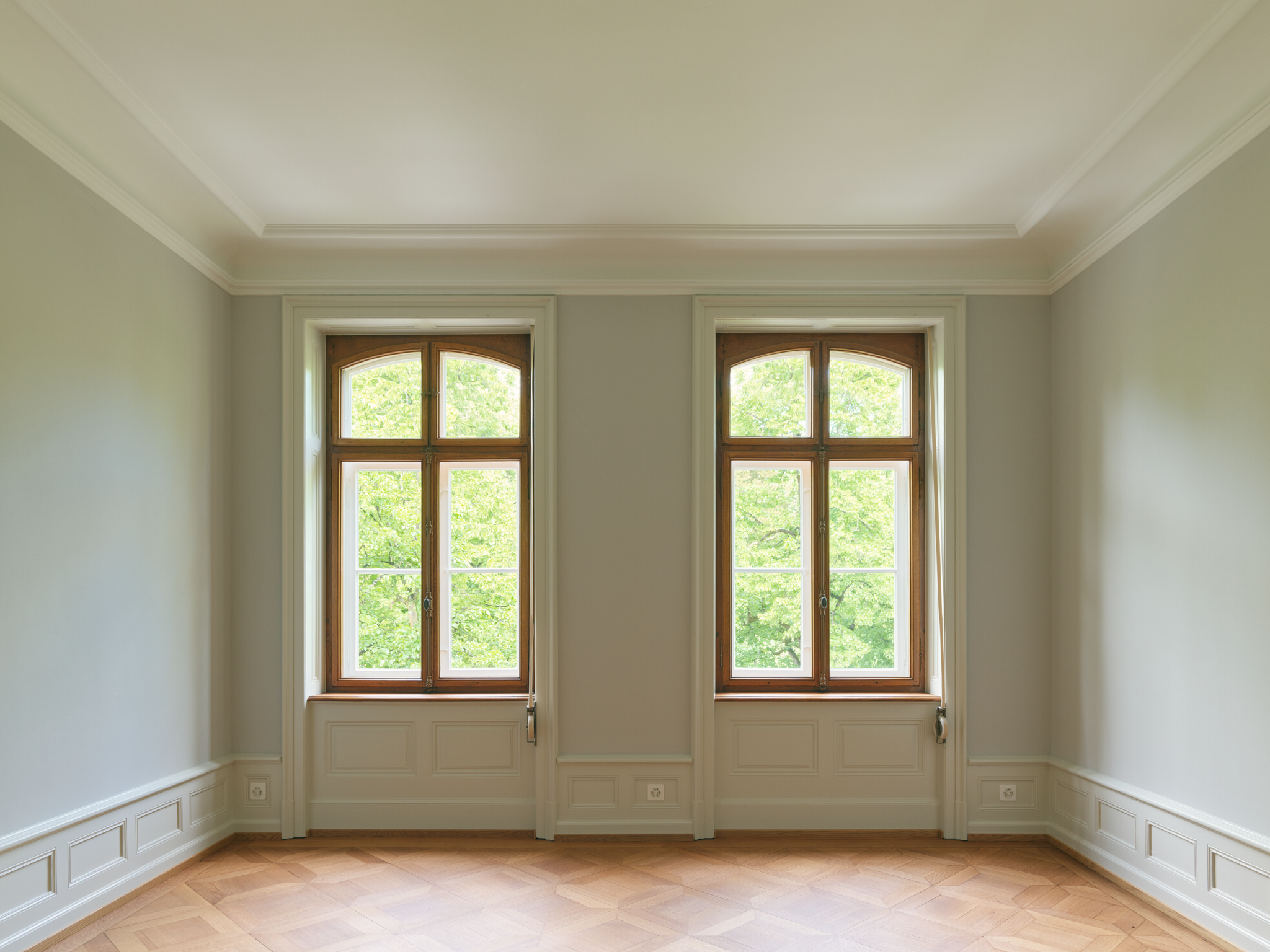Die technischen Installationen wurden komplett erneuert und die Bäder sowie die Küche modernisiert und ins 21. Jahrhundert übergeführt. Die Stuckaturen in den Räumen konnten von alten Farbschichten befreit werden und zeigen nun wieder das ursprüngliche Detail, gleichwohl konnte das Holzwerk mit vereinzelten Ergänzungen erhalten und aufgefrischt werden. Ein Schliff für die Parkettböden und eine gründliche Reinigung der Fliesenböden lassen diese wieder in altem Glanz erstrahlen.