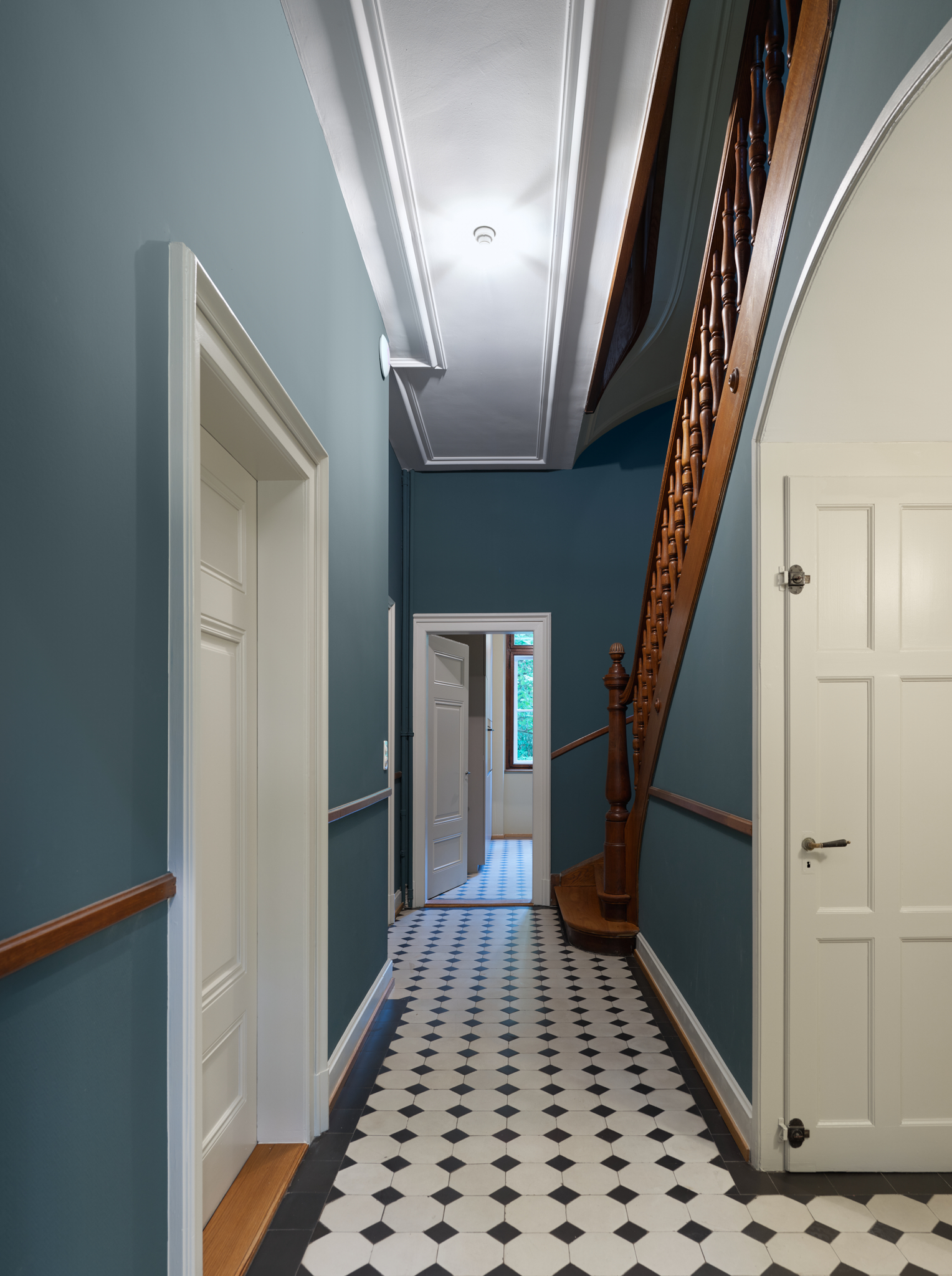 In die Jahre gekommene und blättrige Tapeten wurden durch lebendige Farbtöne von Farrow Ball und Little Greene ersetzt, die zur Behaglichkeit der Räume beitragen.